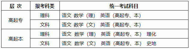 1.高起专、高起本统一考试科目一览表。