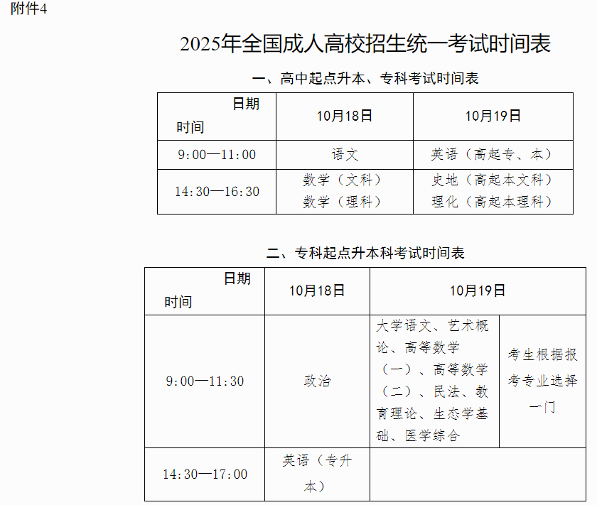(一)考试时间为2025年10月18日、19日(具体安排详见附件4)。